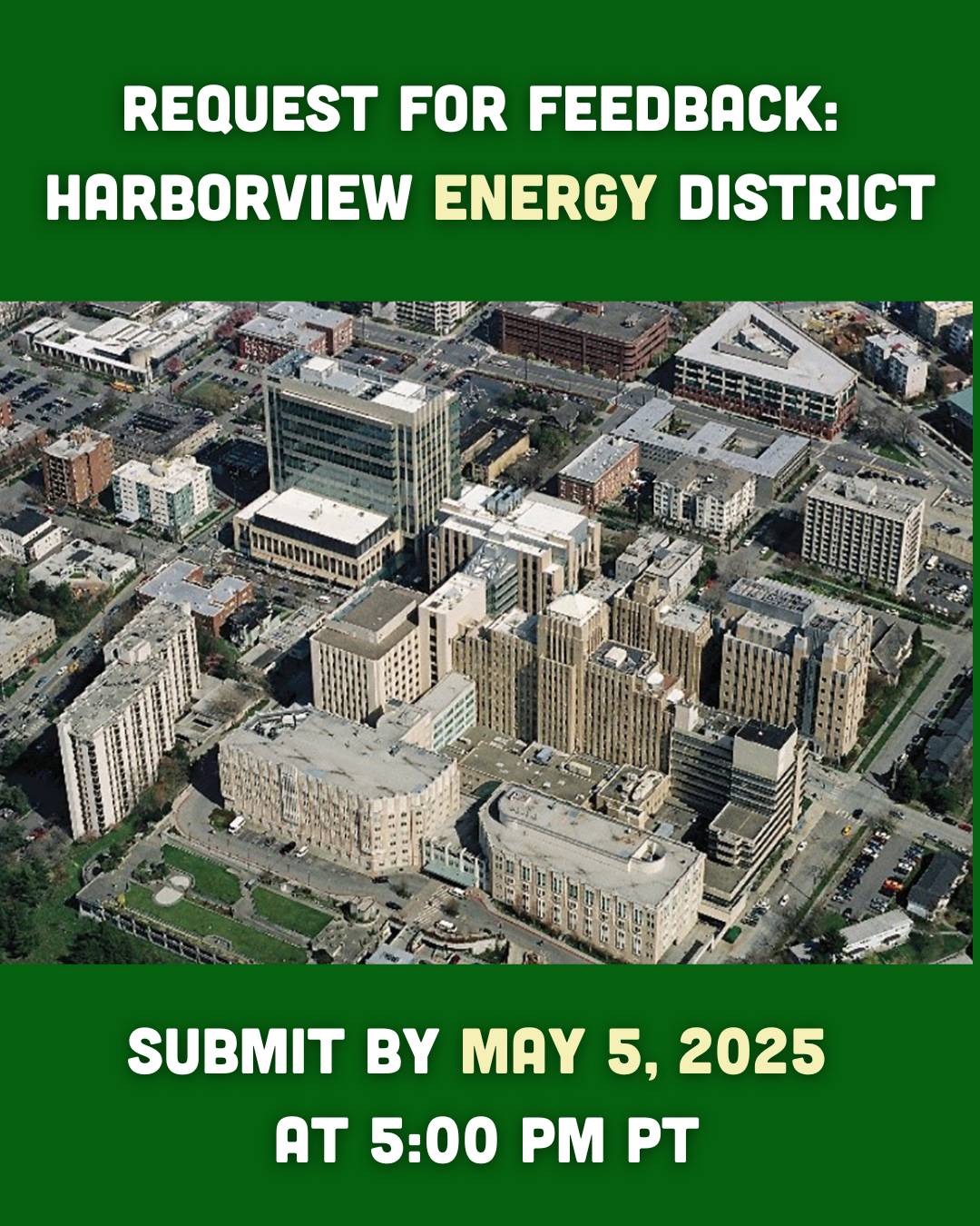 Harborview Medical Center (HMC) is exploring options to implement a district energy system to serve the campus and, possibly, connect to the broader neighborhood – and King County is seeking input to inform the discussion! Energy developers, consultants, owners, operators, and related experts are invited to provide feedback for consideration on a variety of topics, including energy resilience.