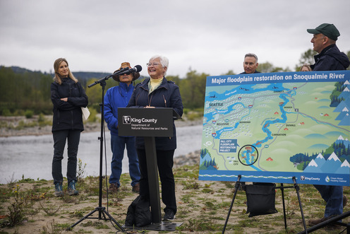 Fall City Floodplain Restoration Project: This April, we celebrated the first anniversary of the completion of the largest salmon habitat restoration project in county history! This project was made possible through over a decade of collaboration with the Snoqualmie Indian Tribe, and in partnership with the Fall City community, Snoqualmie Valley farmers, the Fish, Farm, Flood Committee, and many more.