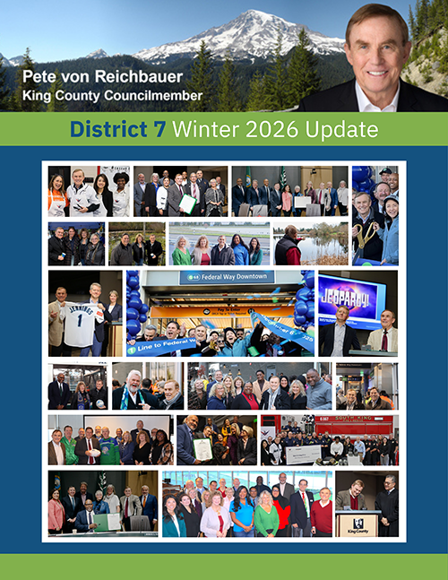 Hell has finally frozen over and we now have light rail in South King County, serving Federal Way Downtown, Star Lake, and Kent Des Moines. We successfully approved the King County 2026-27 Biennial Budget, which includes vital investments in public safety, criminal justice, health, housing, transit, accountability, parks, recreation, and more. Additionally, our government agencies collaborated throughout December to respond to the extensive flooding in our region, ensuring that our residents remained safe, informed, and equipped for recovery.