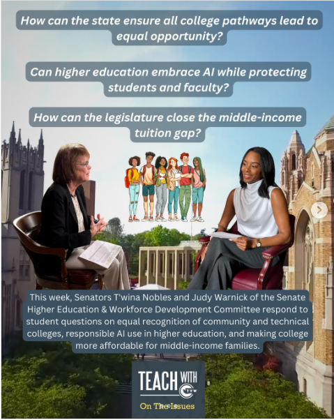 They asked how Washington can ensure community and technical college pathways are equally valued in our workforce, how we should address the rise of artificial intelligence in education, and whether middle-income families can still truly afford a college degree. I sat down with Chair T’wina Nobles to discuss these issues from both sides of the aisle.