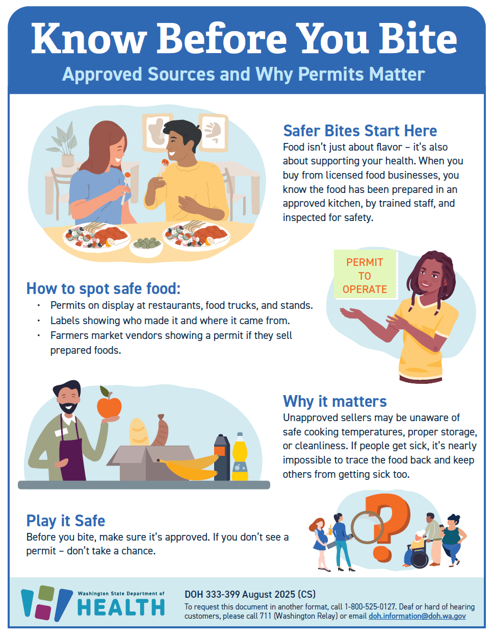- Farmers market vendors showing a permit if they sell prepared foods.