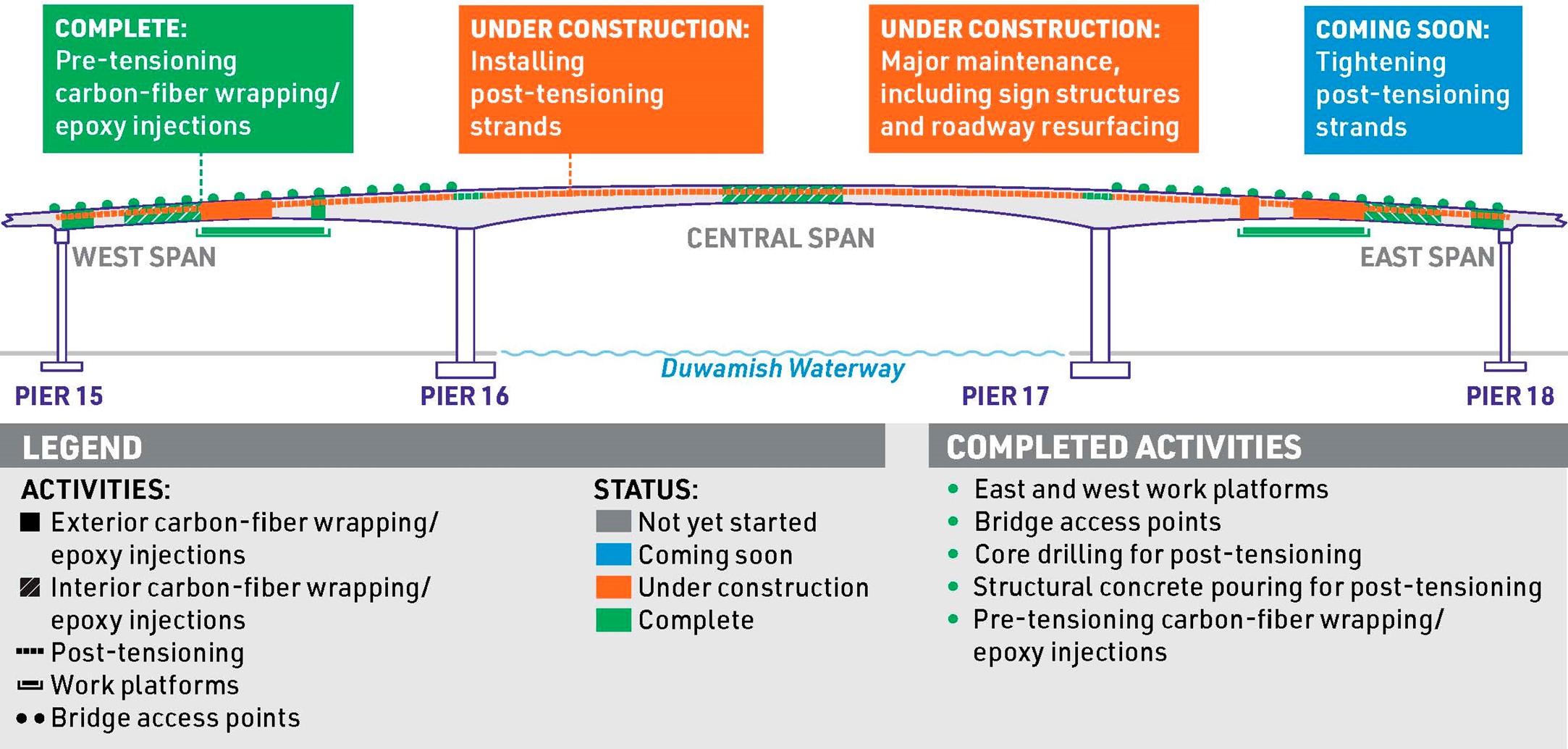 Our repair method videos are a great way to see the current work being done to prepare the bridge for reopening. To watch our earlier videos, please visit our West Seattle Bridge playlist on Youtube.