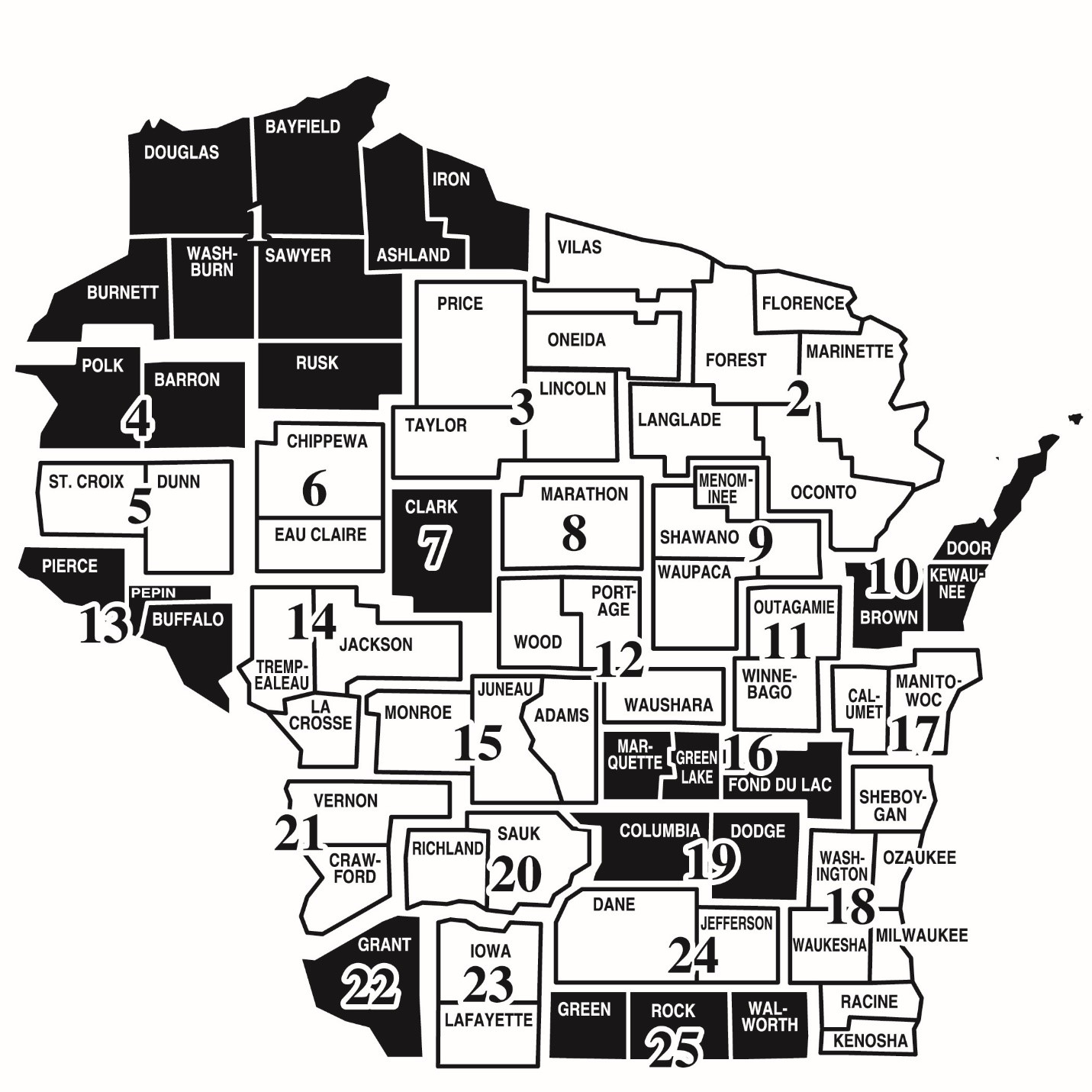 District 1 Ashland, Bayfield, Burnett, Douglas, Iron, Rusk, Sawyer and Washburn