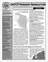 The annual nursery newsletter includes many resources and DATCP contact information for nursery dealers, nursery growers, and Christmas tree growers. It also includes pest and disease updates, upcoming 2025 events, and a brief 2024 programmatic summary.