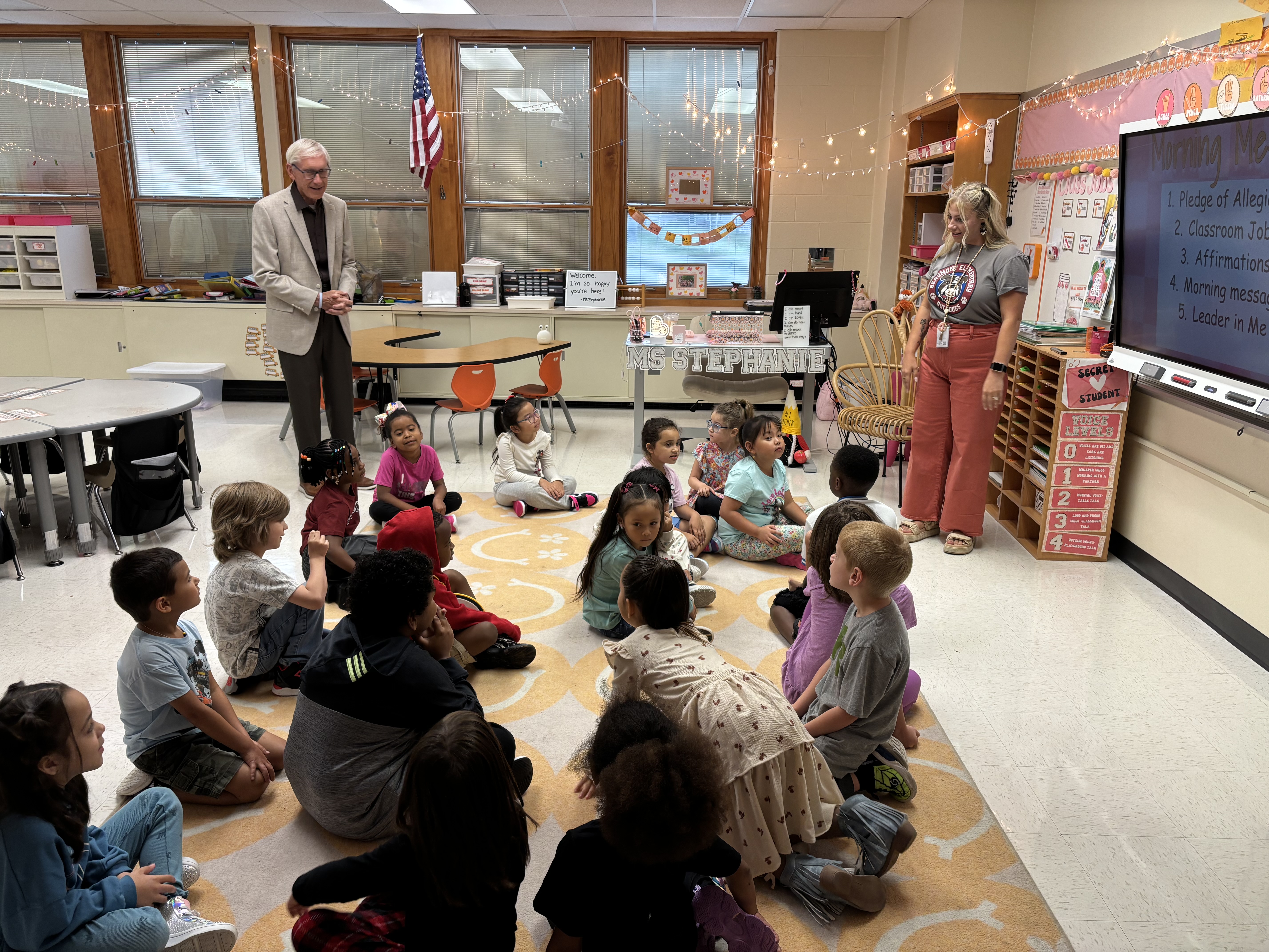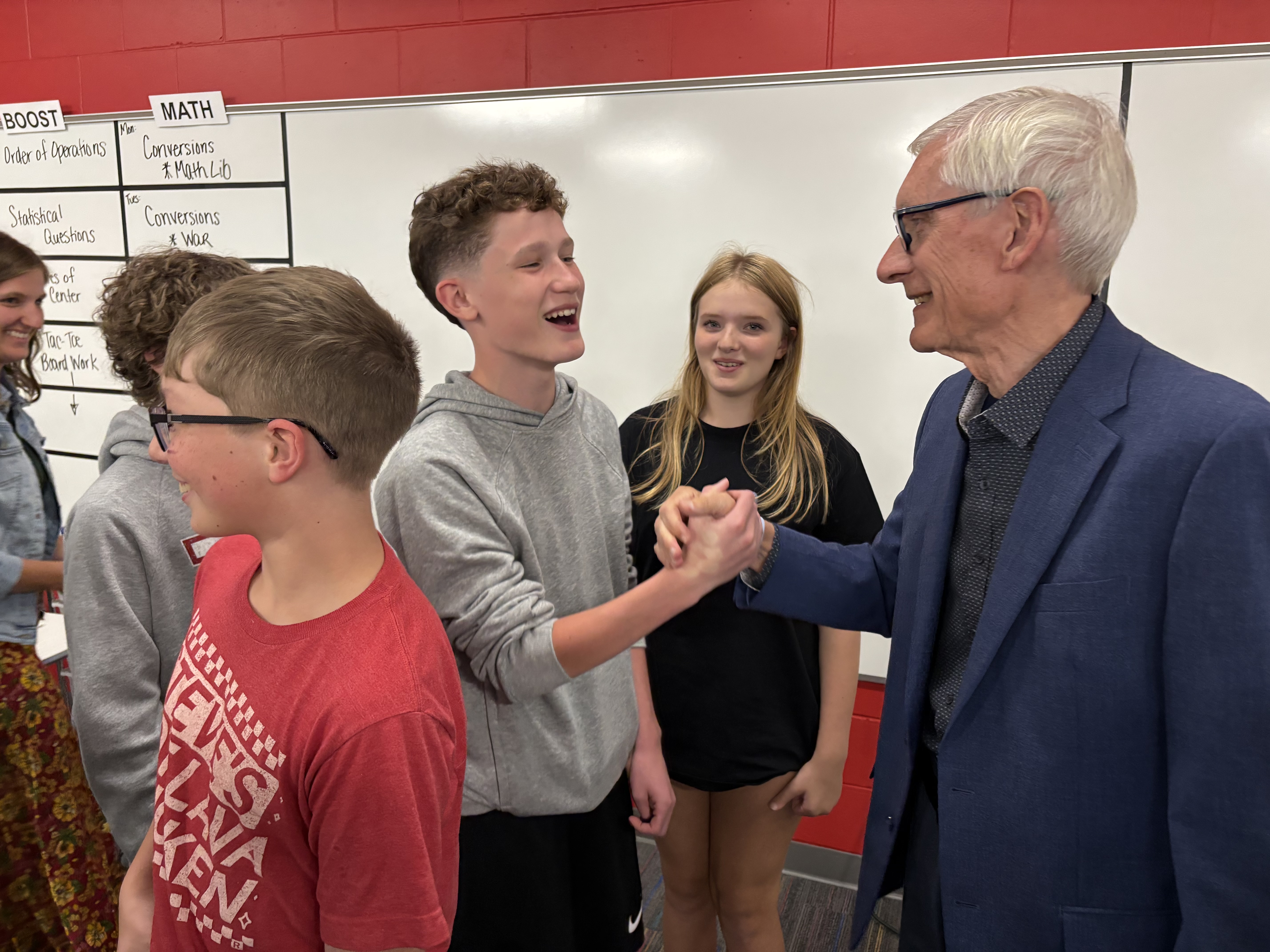 MADISON — Gov. Tony Evers today wrapped up his annual statewide back-to-school tour, during which he visited K-12 schools in communities across the state to welcome students, families, educators, and staff back to school for the 2025-26 school year. As a former teacher, principal, superintendent, and state superintendent, this year marks Gov. Evers’ 49th back-to-school season. Throughout his back-to-school tour, the governor visited classrooms to talk with students, educators, and staff and highlighted his administration’s work to secure increased investments for Wisconsin’s kids and K-12 schools in the final 2025-27 Biennial Budget. The governor also sent a back-to-school video message to educators, administrators, and staff, which is available here. “I’ve spent my entire career fighting for Wisconsin's kids and schools. Ever since my early days as a science teacher, the back-to-school season has always been one of my favorite times of year. Each school year provides a new opportunity for students and educators alike to grow, learn, and inspire,” said Gov. Evers. “I declared 2025 the Year of the Kid here in Wisconsin because I’ve always believed doing what’s best for our kids is what’s best for our state. Investing in Wisconsin’s students, supporting their families, and respecting educators is a critical part of that effort, and it’s more important than ever. As we kick off another school year in Wisconsin, I will continue to fight to do what's best for our kids, our schools, and their futures.” Gov. Evers declared 2025 the Year of the Kid in Wisconsin and proudly signed a pro-kid, bipartisan state budget into law earlier this summer that invests nearly $1.4 billion in spendable revenue for K-12 schools, which includes the largest increase to the special education reimbursement rate in state history, bringing the reimbursement rate to the highest level in 30 years, and $30 million to continue support for school-based mental health services for kids. More information regarding the 2025-27 Biennial Budget is available below. On Tues., Sept. 2, Gov. Evers visited Browning School in Milwaukee for Milwaukee Public Schools (MPS) annual first-day-of-school bell-ringing event. During the visit, the governor greeted students and families as they arrived for the first day of school. Afterward, the governor joined Wisconsin State Superintendent Dr. Jill Underly, MPS Superintendent Dr. Brenda Cassellius, Milwaukee County Executive David Crowley, and Browning School Principal Raymond Unaka, as well as other school and district officials, for a press conference to kick off the school year. Photos of the visit are available here and here. Following this, Gov. Evers visited Washington Elementary School in Stevens Point with Stevens Point Area Public School District’s Superintendent Dr. Cory Hirsbrunner and Principal Hallie Ritchay. They began the tour by participating in a get-to-know you game with first graders on the playground and then visited classrooms, including reading a book with students and stopping by a sixth-grade class to help with small-group lessons about building community. Photos of the visit are available here and here. To conclude the day, Gov. Evers visited Altoona Elementary School in Altoona with School District of Altoona Superintendent Dr. Heidi Eliopoulos and Principal Leslie Lancette. During the visit, the governor learned about the district's efforts to improve student outcomes, participated in a STEM activity with kids in the library, joined in reading a book called “First Day Jitters,” and met with students and staff. Photos of the visit are available here and here. On Wed., Sept. 3, as a continuation of the back-to-school tour, Gov. Evers visited Beaumont Elementary School in Green Bay, where he was joined by Green Bay Area Schools Superintendent Vicki Bayer and Principal Jenna Paal. During the visit, the governor visited first and second-grade classrooms during their morning activities and finished with a visit to a third-grade class, where they were learning about Wisconsin and major cities across the state. Photos of the visit are available here and here. Afterward, Gov. Evers, along with the District Administrator Jason Bertrand, went on a tour of the School District of Crandon. The governor started the tour with a visit to a third-grade class, where they were learning about vocabulary, and participated in their activity workshop. Afterward, the governor visited a college-credit Spanish 4 class, where he spoke with the students about their experience and participated in a Q&A. The visit concluded with a stop to an AP Psychology class, where the governor participated in the lesson. Photos of the visit are available here and here. On Thurs., Sept. 4, Gov. Evers visited Madison East High School, part of the Madison Metropolitan School District. The governor joined Principal Patrice Haste in welcoming and mingling with students before going on to visit an AP African American History class. He then made his way over to an Algebra 1 classroom where the students were learning an introduction to claim, evidence, and reasoning. Then, Gov. Evers continued his day with a visit to Dodgeville Elementary School, part of the Dodgeville School District. The governor, along with District Administrator Ryan Bohnsack and Elementary School Principal Heather Zizis, participated in a team bonding activity with some students, then went on to join a trivia game with students on Wisconsin history. The governor finished the visit meeting with students who were creating an all-about-me poster. On Fri., Sept. 5, Gov. Evers visited Hudson Prairie Elementary School and Hudson Middle School and met with students and teachers. During the visit to the middle school, the governor participated in a sixth-grade Language Arts class activity and visited a German language class, where he heard about their most recent lesson, which included a dance to help students learn Ger