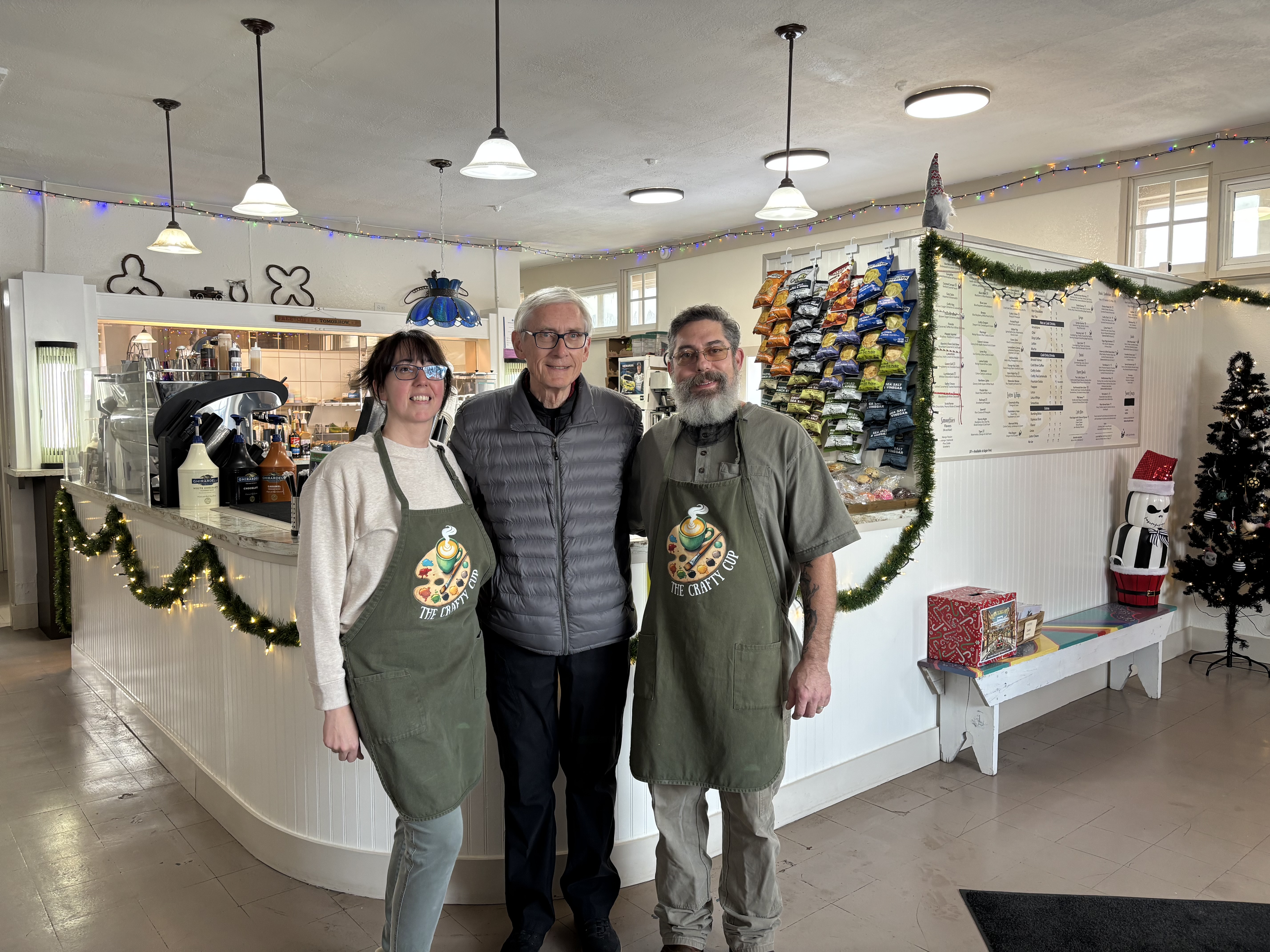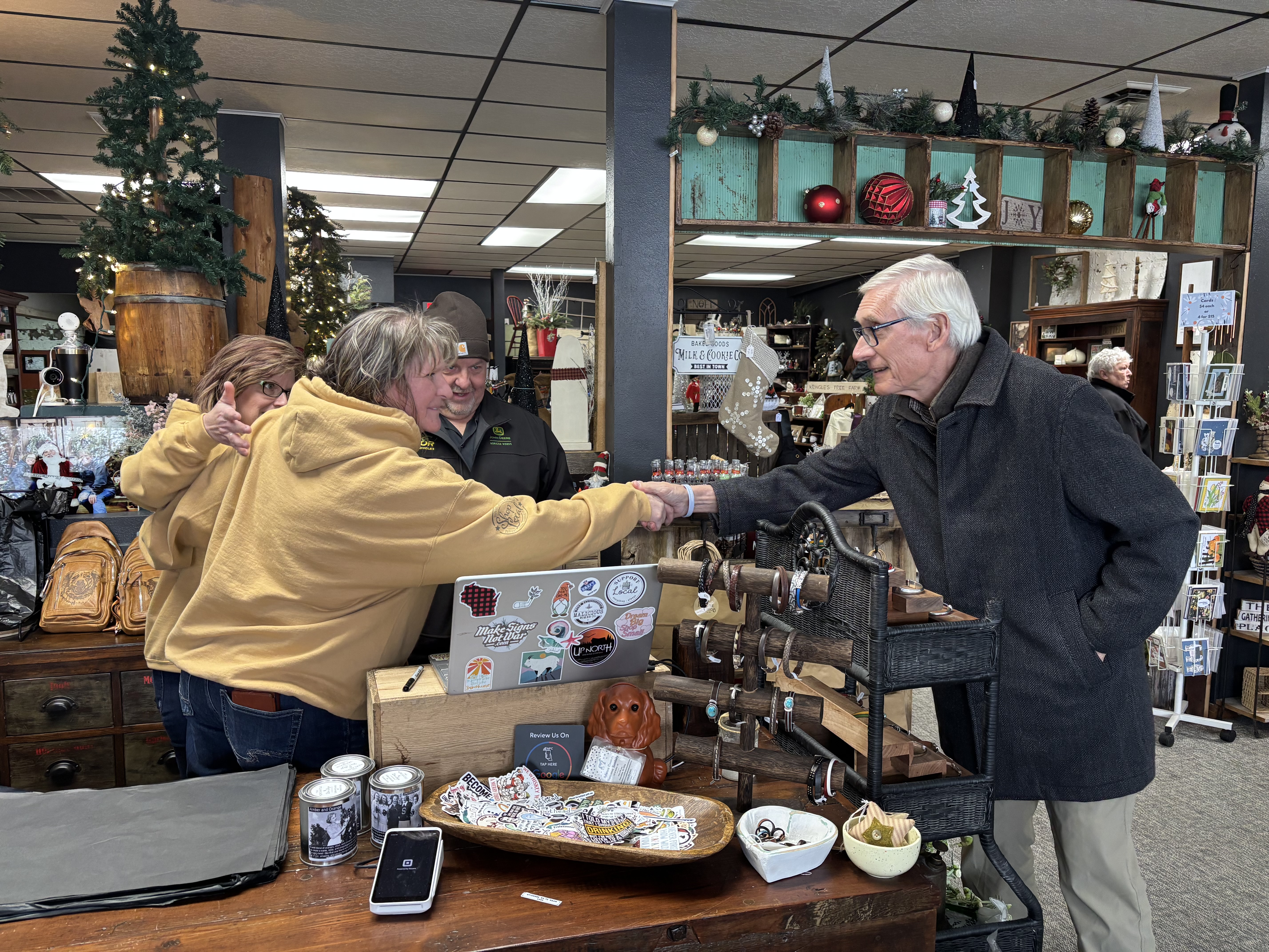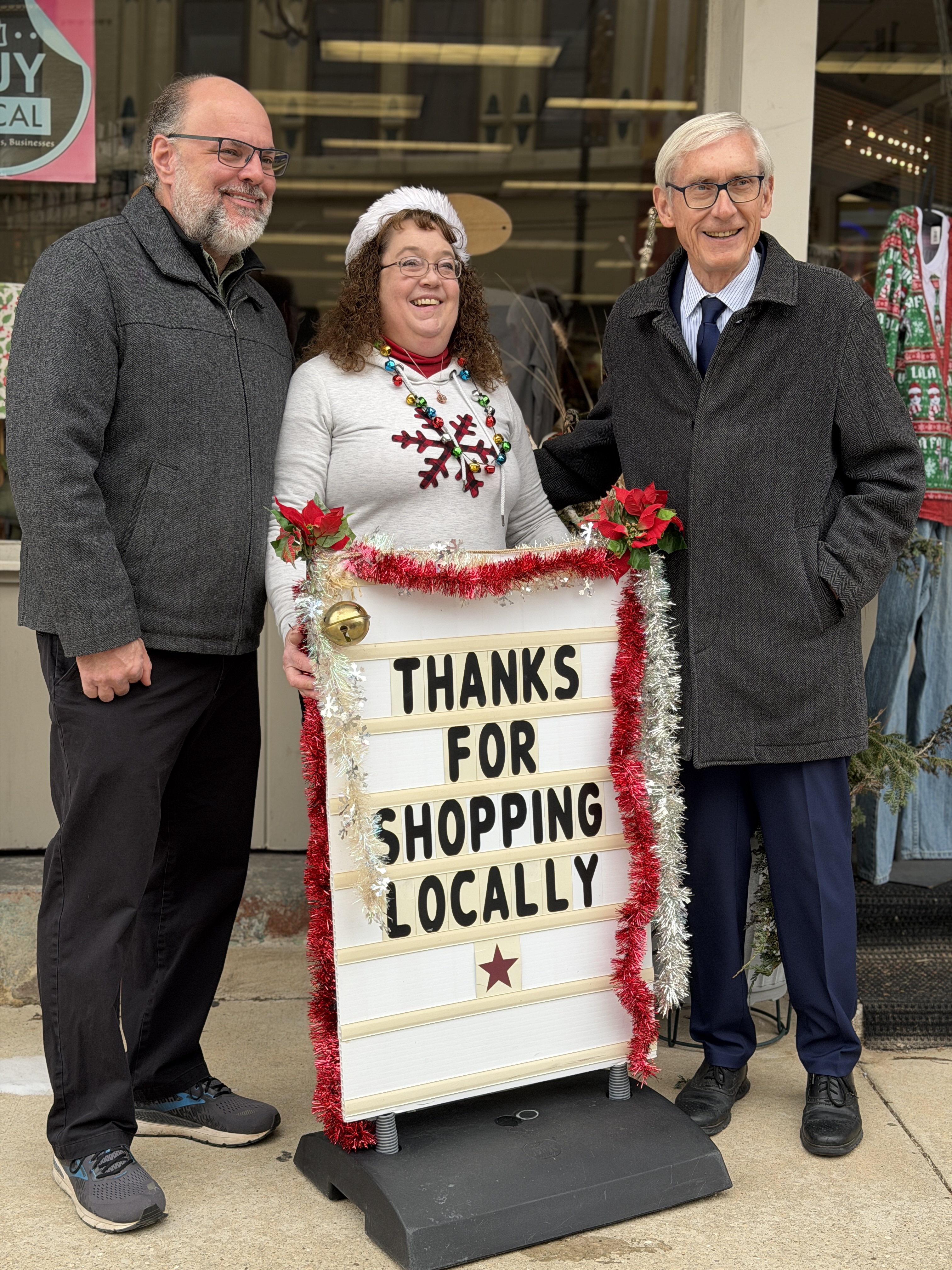 On Dec. 1, Gov. Evers began his statewide visits to promote and celebrate the “Shop Small Wisconsin Season,” a time that promotes shopping at small, local businesses during the holiday season. While there, the governor highlighted the impact of small businesses on local communities, as it is estimated that approximately two-thirds of every dollar spent at a small business stays in the local community. The governor started his visit in Mercer by visiting Impulsive Necessities at Whimsies before ending up at The Crafty Cup. Photos of the visit are available here and here.