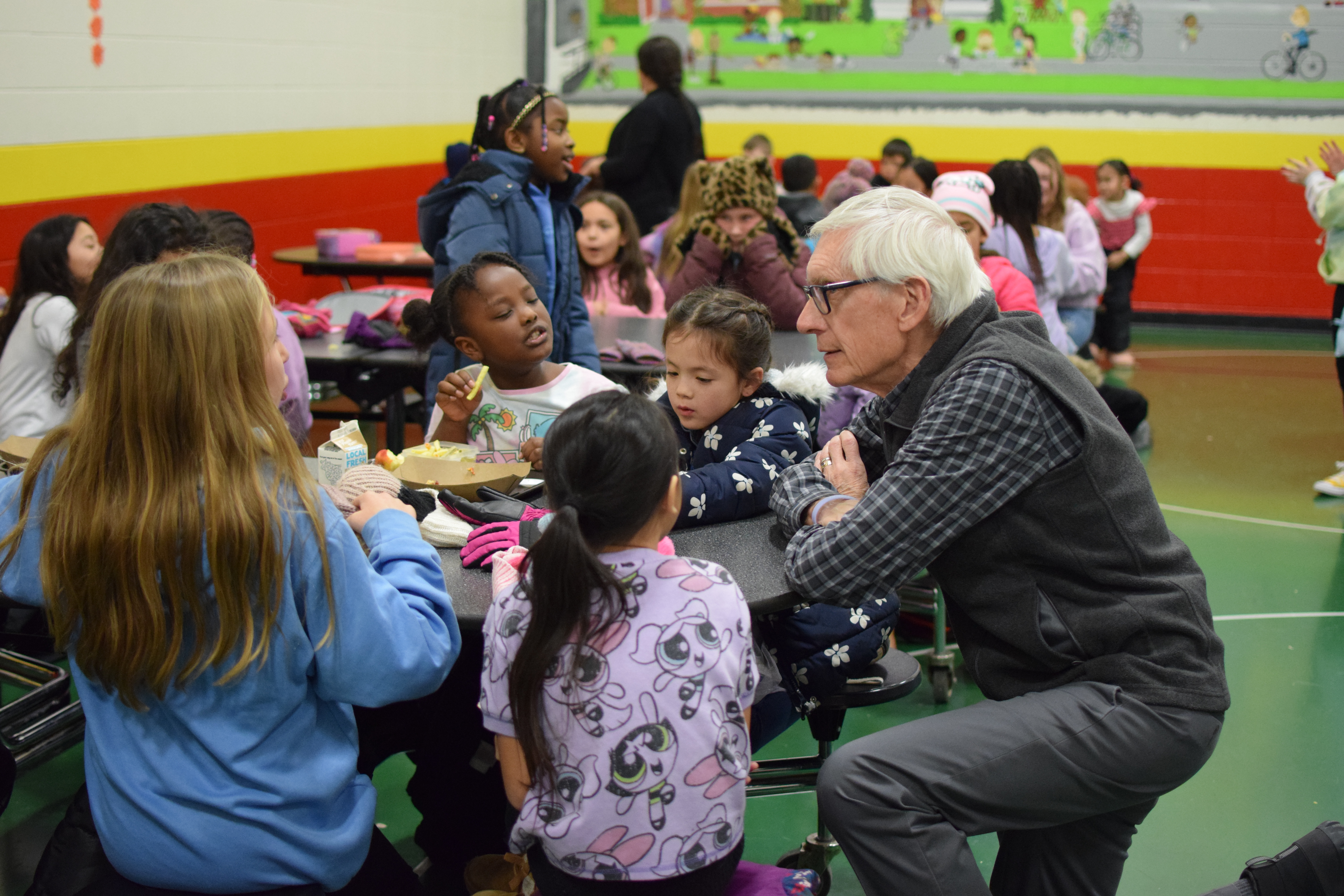 On Jan. 28, Gov. Evers visited Hoover Elementary School in New Berlin to hear directly from school administrators and staff about the positive impact the governor’s proposed “Healthy Meals, Healthy Kids” initiative would have on the students and educators. During his visit, Gov. Evers also participated in a podcast with a third grade class and answered questions from students learning about state government. Photos of the visit are available here and here.