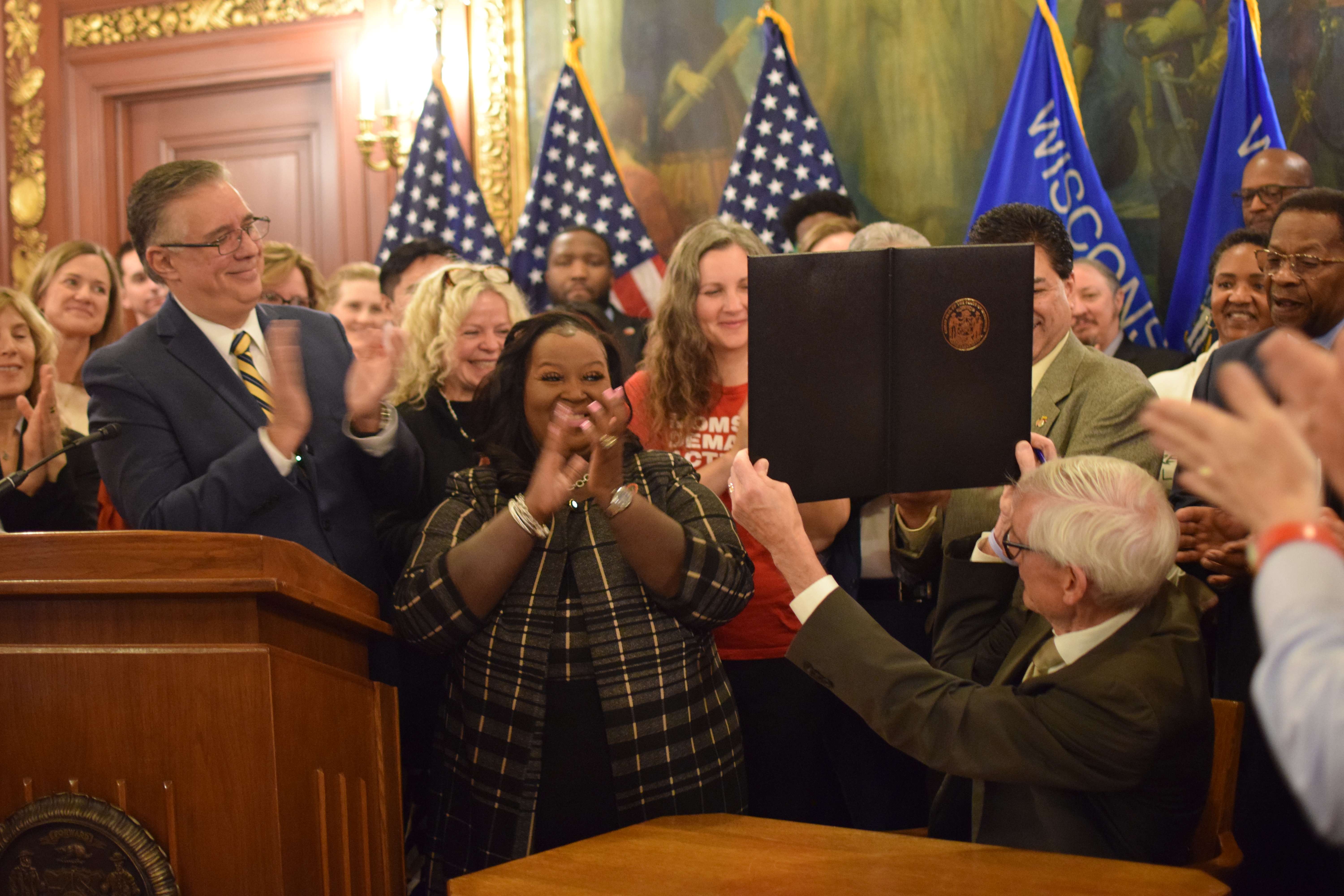 On Feb. 3, Gov. Evers attended the grand opening of the Sunset View Housing Project in Juneau. This affordable and workforce housing project was partially funded through a more than $10 million Neighborhood Investment Fund grant. During the visit, the governor highlighted his administration’s continued commitment to invest in affordable housing and workforce development statewide. Photos of the visit are available here and here.
