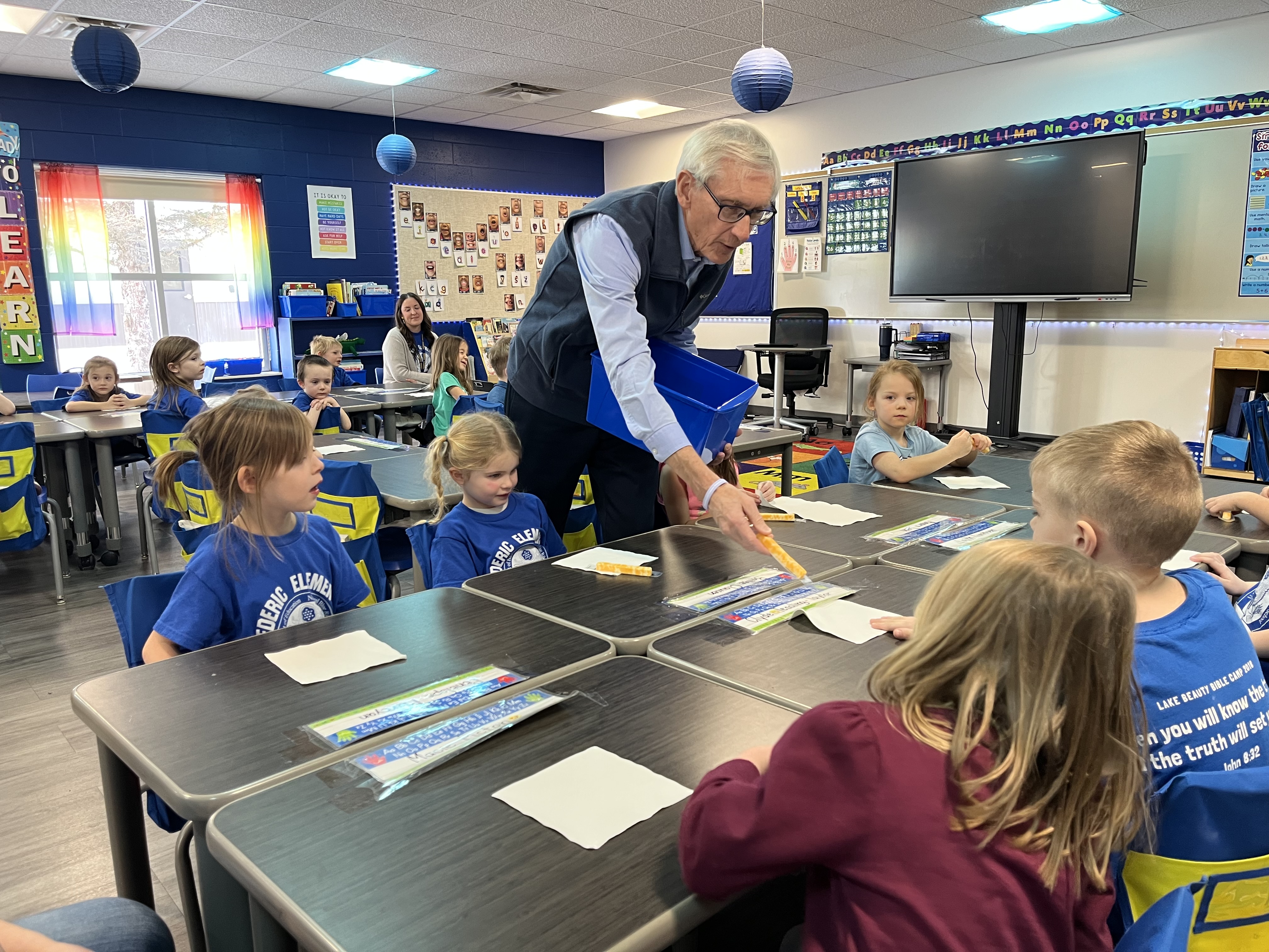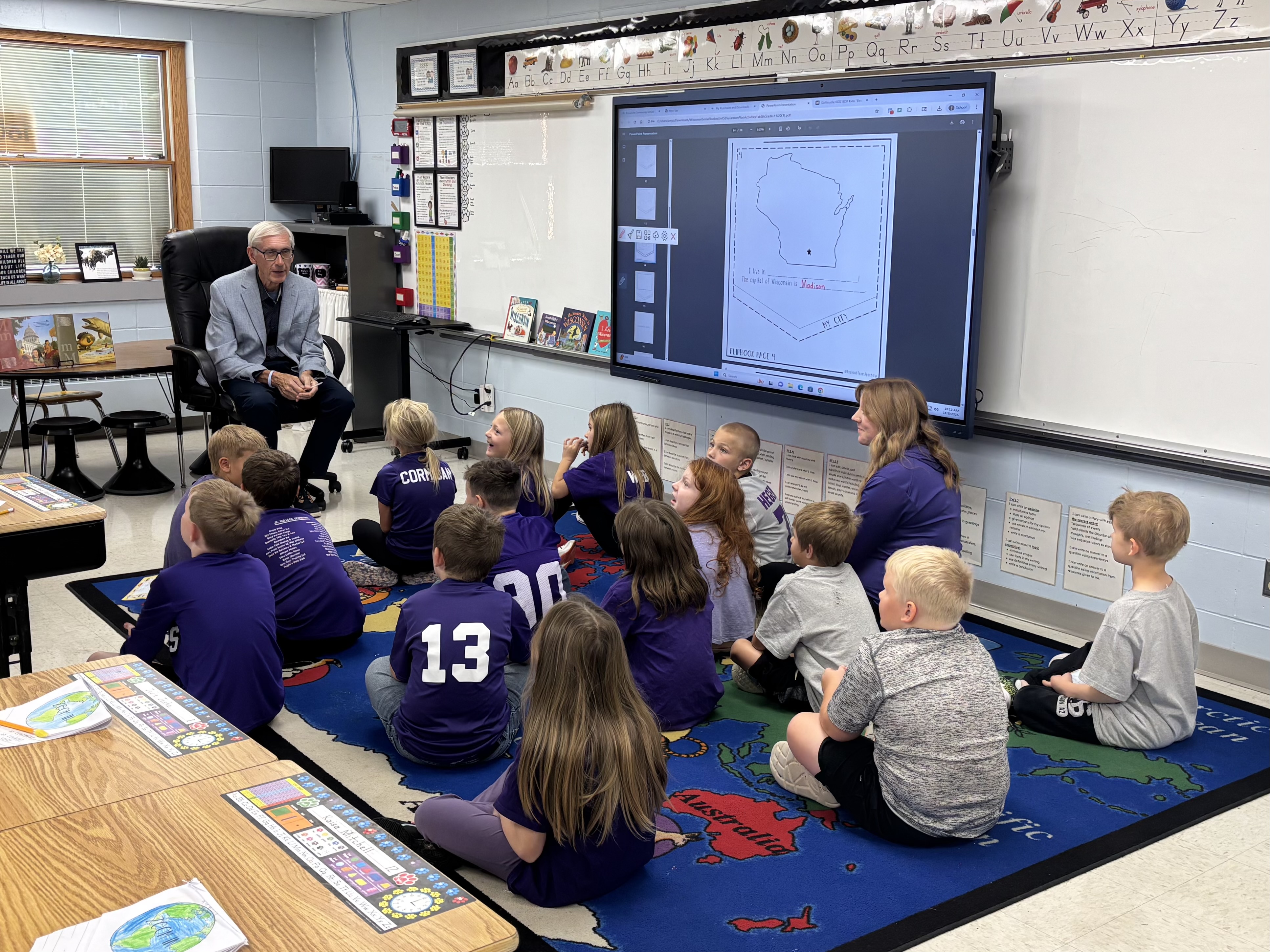 On Oct. 8, Gov. Evers visited Tiffany Creek Elementary School in Boyceville, where he met with students, families, educators, and staff, and highlighted his and his administration’s work to secure increased investments for Wisconsin’s kids and K-12 schools in the final 2025-27 Biennial Budget. During the visit, the governor visited classrooms and engaged in various activities, such as a Q&A with a second grade class, a lesson on regions in Wisconsin and their resources, and a hands-on experiment in the school’s STEM Lab. Photos of the visit are here and here.