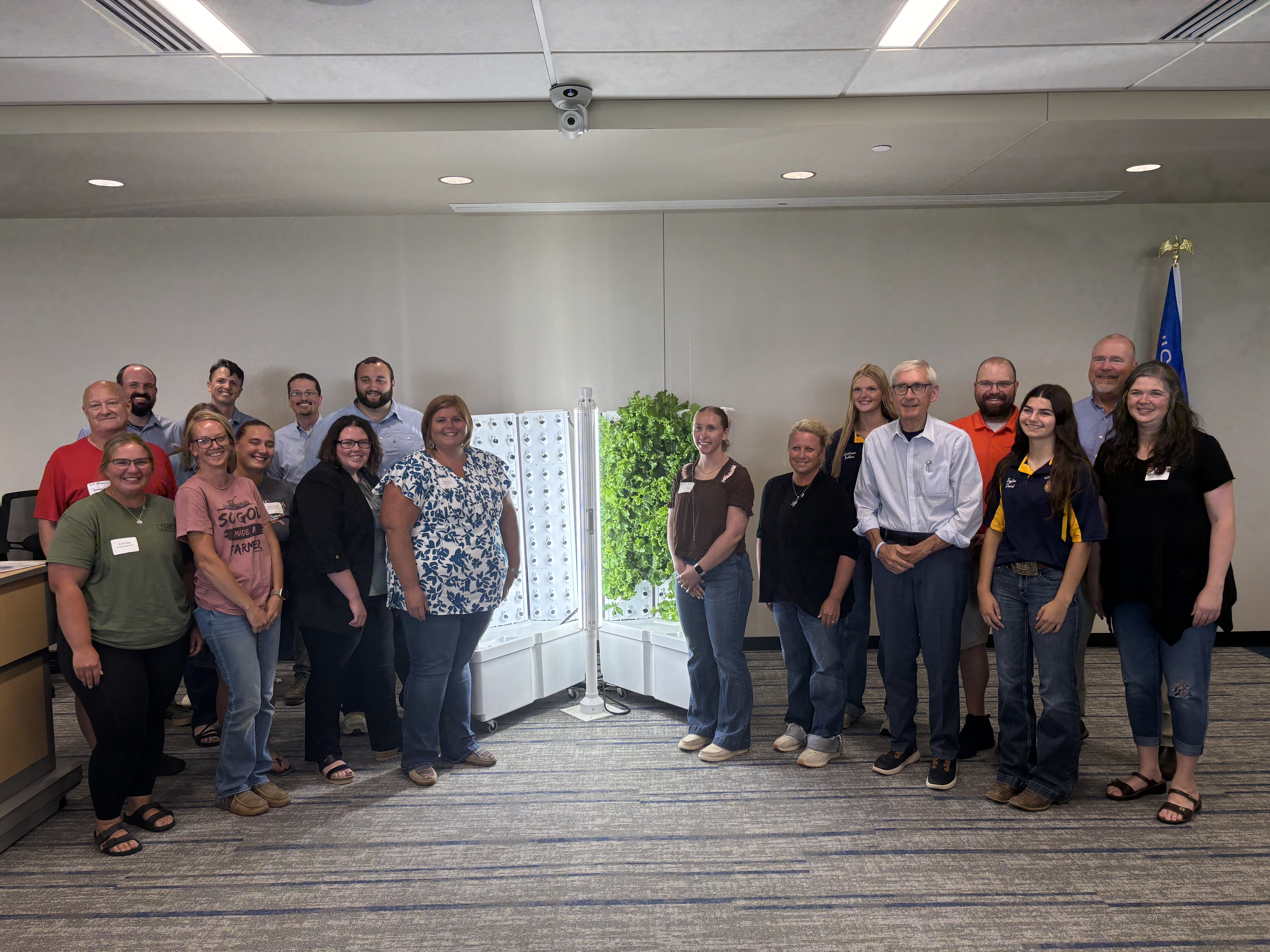 On Aug. 13, Gov. Evers, together with DATCP Secretary Romanski, visited Fork Farm’s hydroponics unit distribution at Southwest Wisconsin Technical College’s campus. Fork Farms, a company operating out of TitletownTech in Green Bay, created a unique hydroponic growing system called the Flex Farm that allows consumers to grow up to 394 pounds of fresh food a year indoors and in just nine square feet of space. During the visit, the governor helped deliver Flex Farms to classrooms and heard about how the educators will incorporate it into their teachings. Photos of the governor’s visit are available here and here.