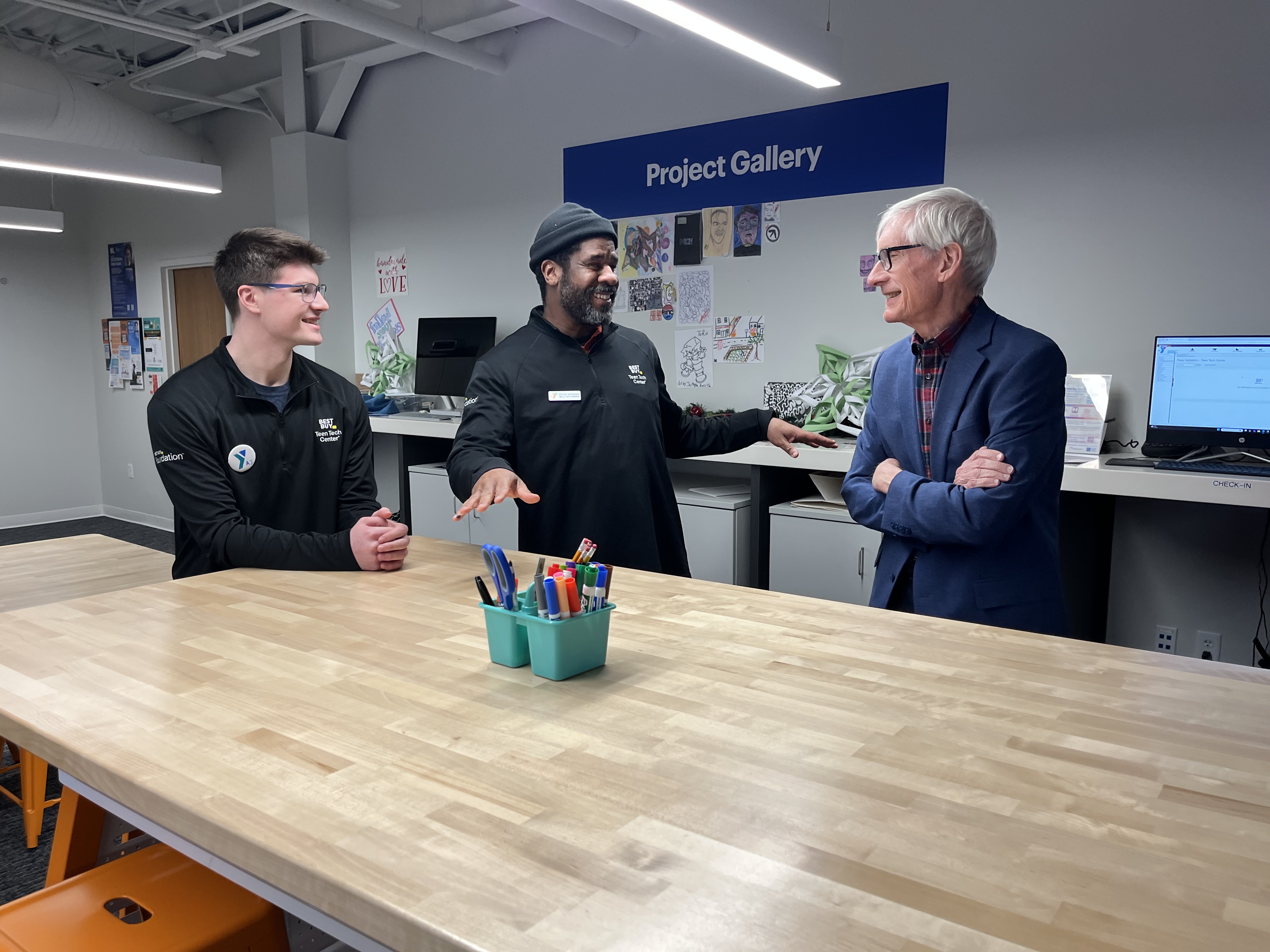 On May 6, during National Travel and Tourism Week, Gov. Evers, First Lady Evers, and Tourism Secretary Sayers visited the Museum of Wisconsin Art (MOWA) in West Bend, which supplies art for the Wisconsin Executive Residence. During the tour, Gov. Evers, First Lady Evers, and Secretary Sayers were able to see MOWA’s current featured exhibitions: No Agenda: Fred Stonehouse; When One Door Closes: A Teen Perspective on Change; Franklin Boggs: The Art of Tanning; and Sherrie Levine: After Russell Lee 1-60. They were also able to see the museum’s permanent collections featuring a number of artists, including Frank Lloyd Wright. Gov. Evers, First Lady Evers, and Secretary Sayers also participated in the teen art exhibit by writing notes to add to a MOWA wall about making positive change in the world. MOWA is a recipient of the state Joint Effort Marketing Grant Program as one of 13 members of Wisconsin Art Destinations. Photos of the governor’s visit are available here and here.