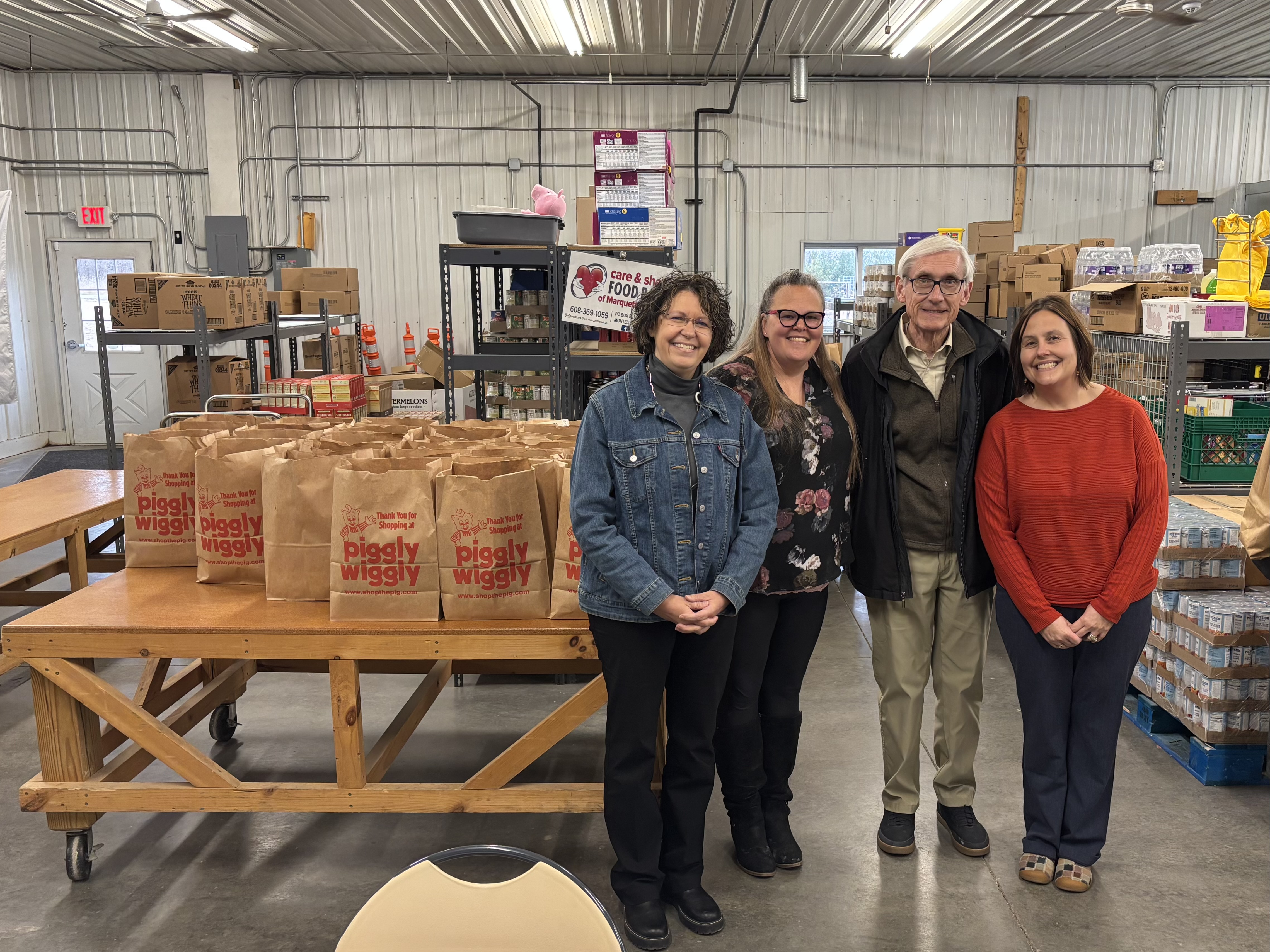 On Nov. 19, in continuation of Gov. Evers’ statewide visits to community food pantries, the governor visited the Marquette County Care and Share Food Bank in Montello. During the visit, the governor toured the facility, helped package food, and heard firsthand accounts of how communities struggled during the longest federal government shutdown in U.S. history. Photos of the visit are available here and here.