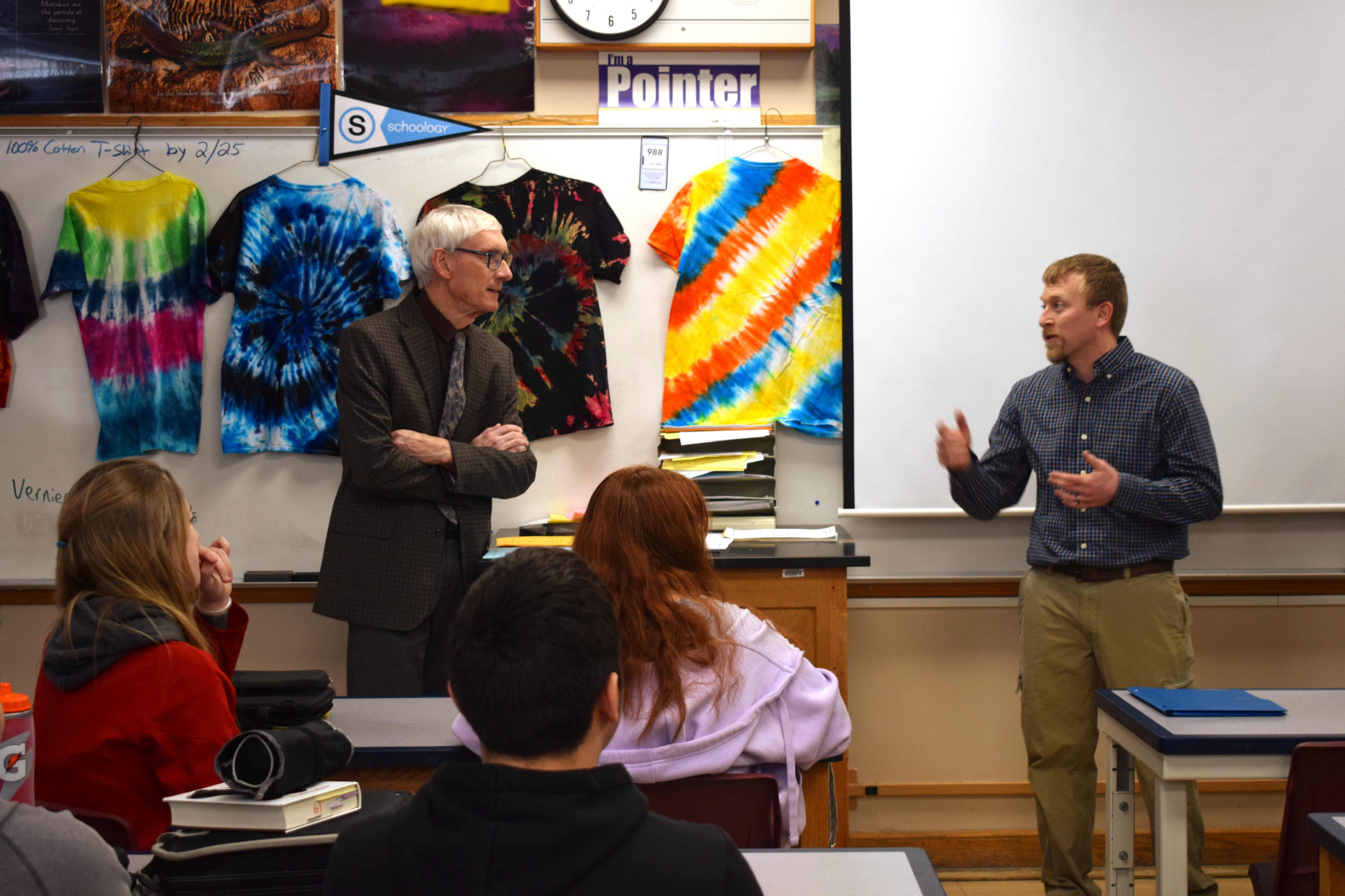 On Feb. 19, Gov. Evers visited P.J. Jacobs Junior High School in the Stevens Point Area Public School District. During the visit, Gov. Evers visited classrooms to talk with educators and students and highlight measures to support K-12 schools in his executive budget. Photos of the visit are available here and here.