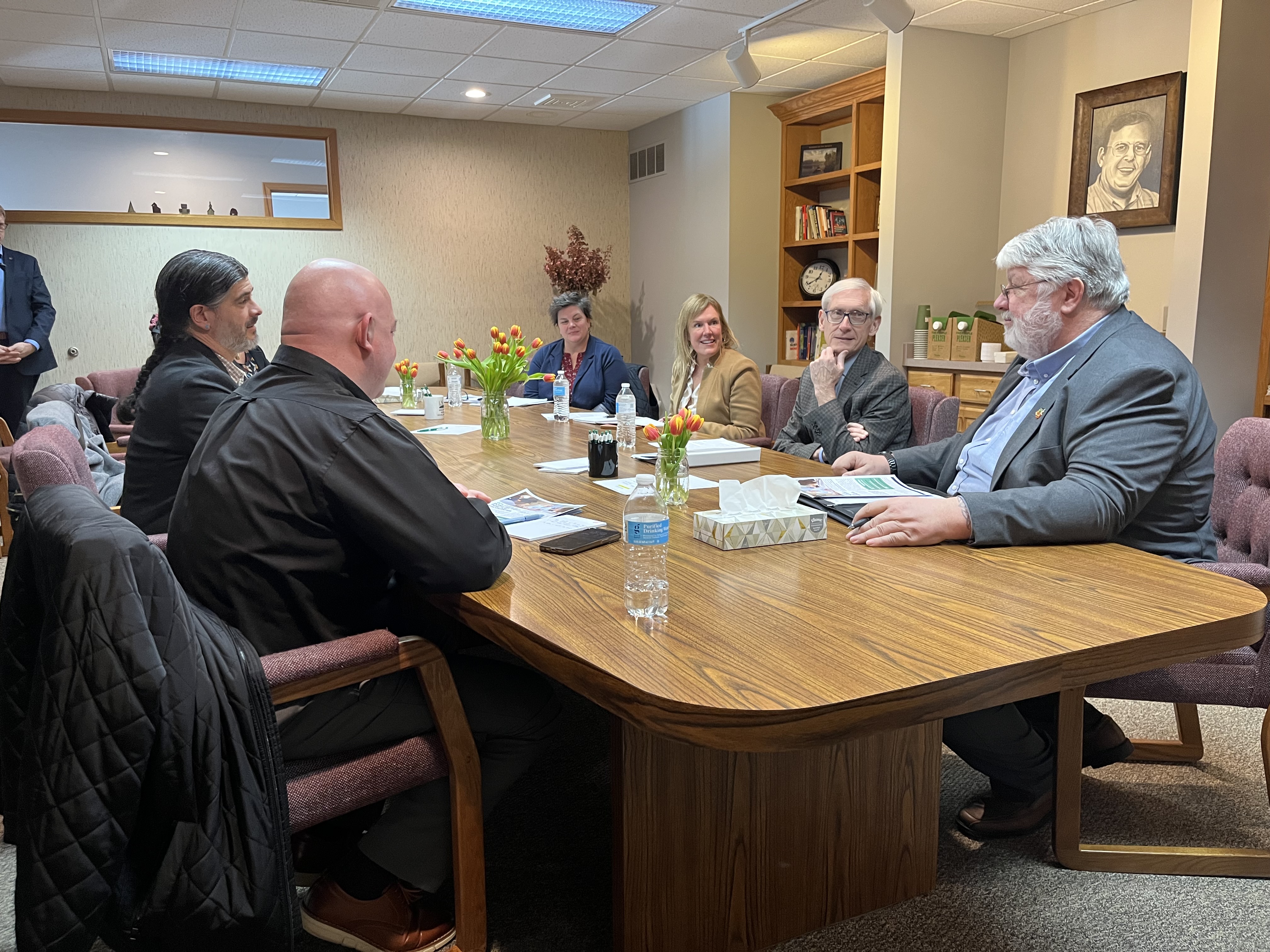 On Sept. 16, Gov. Evers visited the Menominee Nation and, along with Menominee Tribal Chairman Joey Awonohopay and Vice-Chair Michael Fish Jr., toured the Menominee Community Kitchen Solar Project and the Menominee Elder Home Solar and Battery Backup Project as part of his National Clean Energy Week visits. Both projects are led by Sun Bear Industries in partnership with the Menominee Nation. Sun Bear Industries works to support Tribal and underserved communities by outfitting homes with self-reliant energy systems, with the goal of strengthening local energy independence and creating energy sovereignty. Photos of the visit are available here and here.