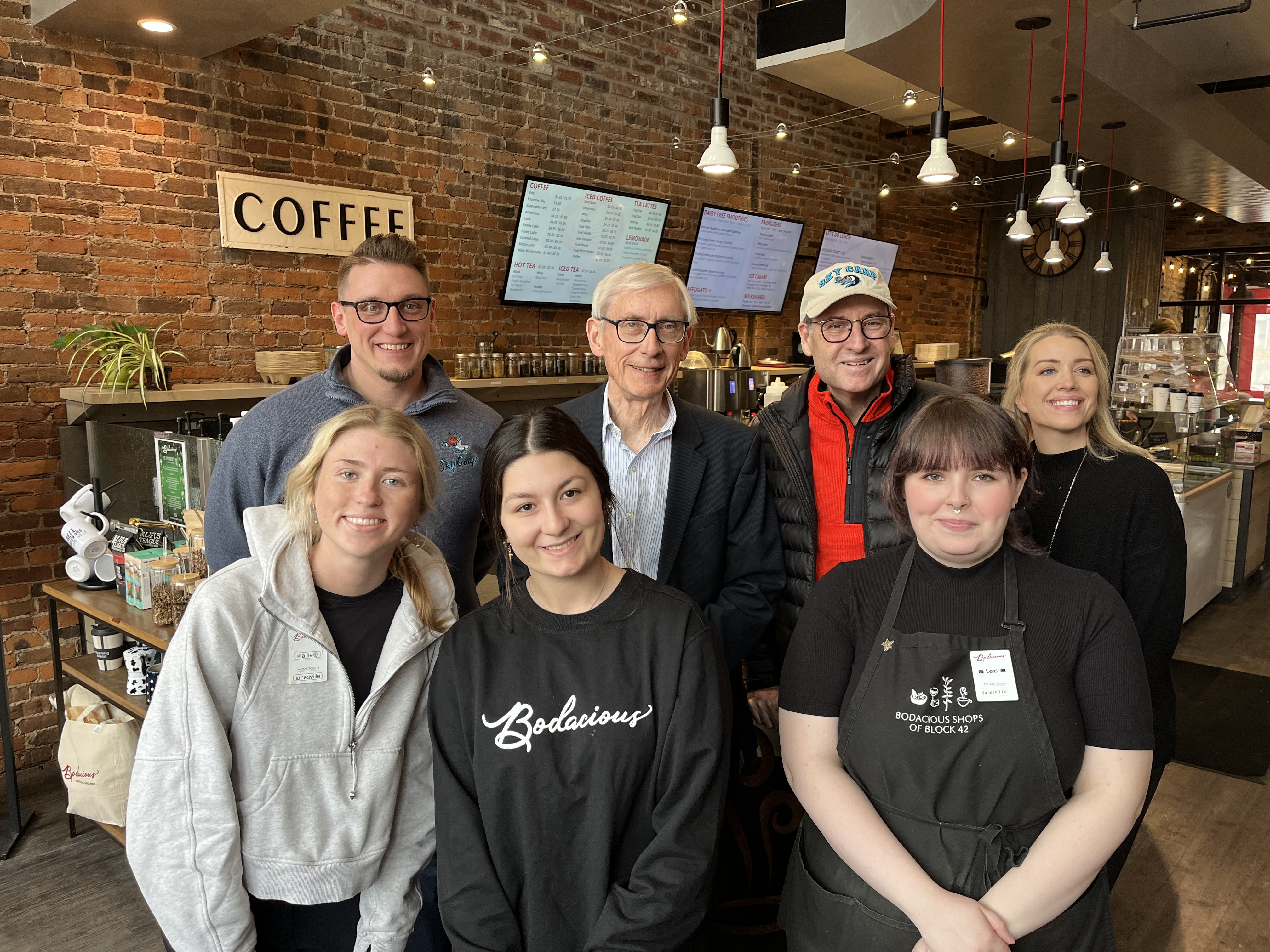 On Dec. 2, Gov. Evers continued his celebration of the “Shop Small Wisconsin Season” by visiting small businesses in Black River Falls. According to the U.S. Small Business Administration, in 2025, small businesses comprised more than 99 percent of businesses in Wisconsin and employed 1.2 million individuals across the state, nearly half of all Wisconsin workers. During the visit, the governor stopped by Falls Florist and Greenhouse and Revolution Coffee. Photos of the visits are available here and here.