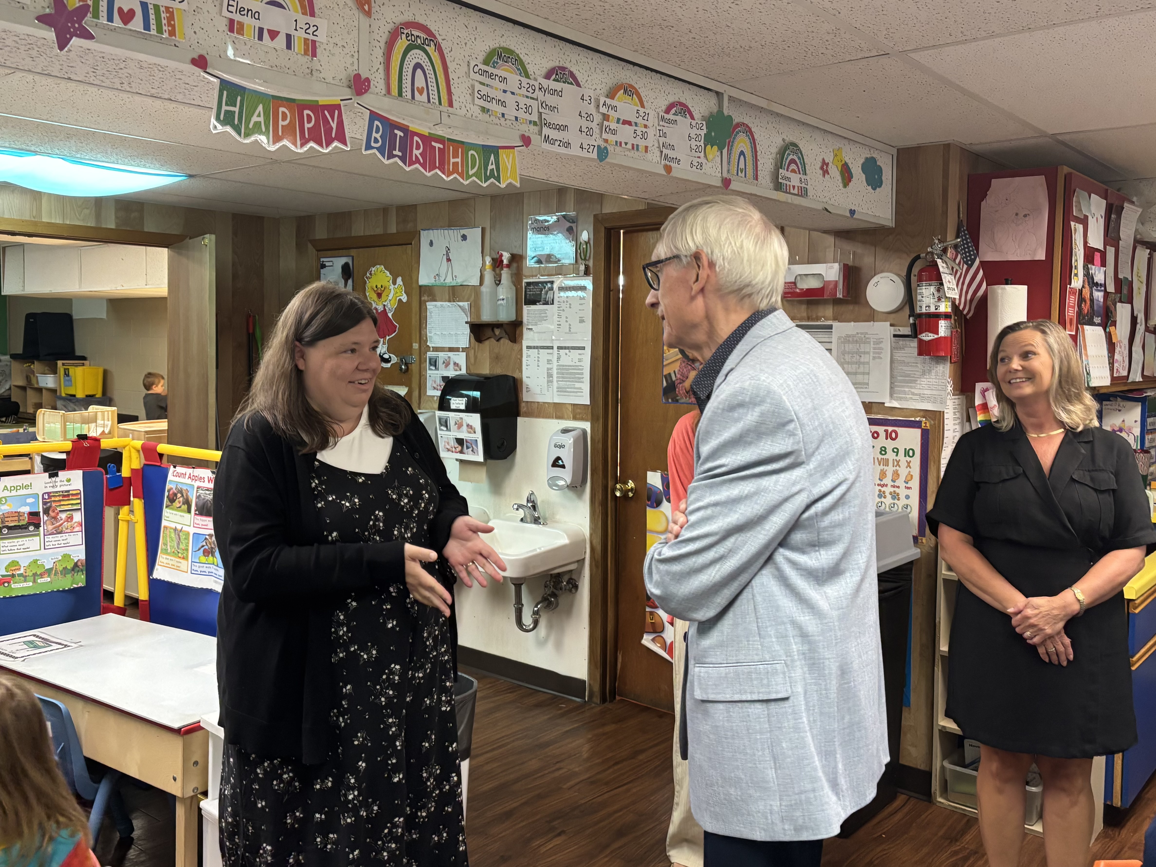 On Sept. 3, Gov. Evers, along with the District Administrator Jason Bertrand, went on a tour of the School District of Crandon. The governor started the tour with a visit to a third grade class, where they were learning about vocabulary, and participated in their activity workshop. Afterward, the governor visited a college-credit Spanish 4 class, where he spoke with the students about their experience and participated in a Q&A. The visit concluded with a stop at an AP Psychology class, where the governor participated in the lesson. Photos of the visit are available here and here.
