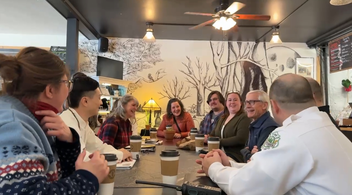 On Feb. 4, Gov. Evers, together with DNR Secretary Hyun, visited A Place for Coffee in Marinette to discuss PFAS contamination and safe water infrastructure with community members and stakeholders.