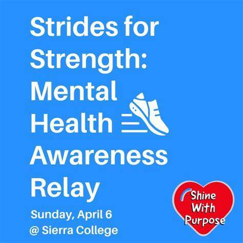 Join Shine With Purpose for the inaugural Strides for Strength: Mental Health Matters event on April 6, 2025, at Sierra College in Rocklin. This 8-hour event invites individuals and teams to walk, stride, or run in support of those affected by mental health challenges, symbolizing community compassion and solidarity.