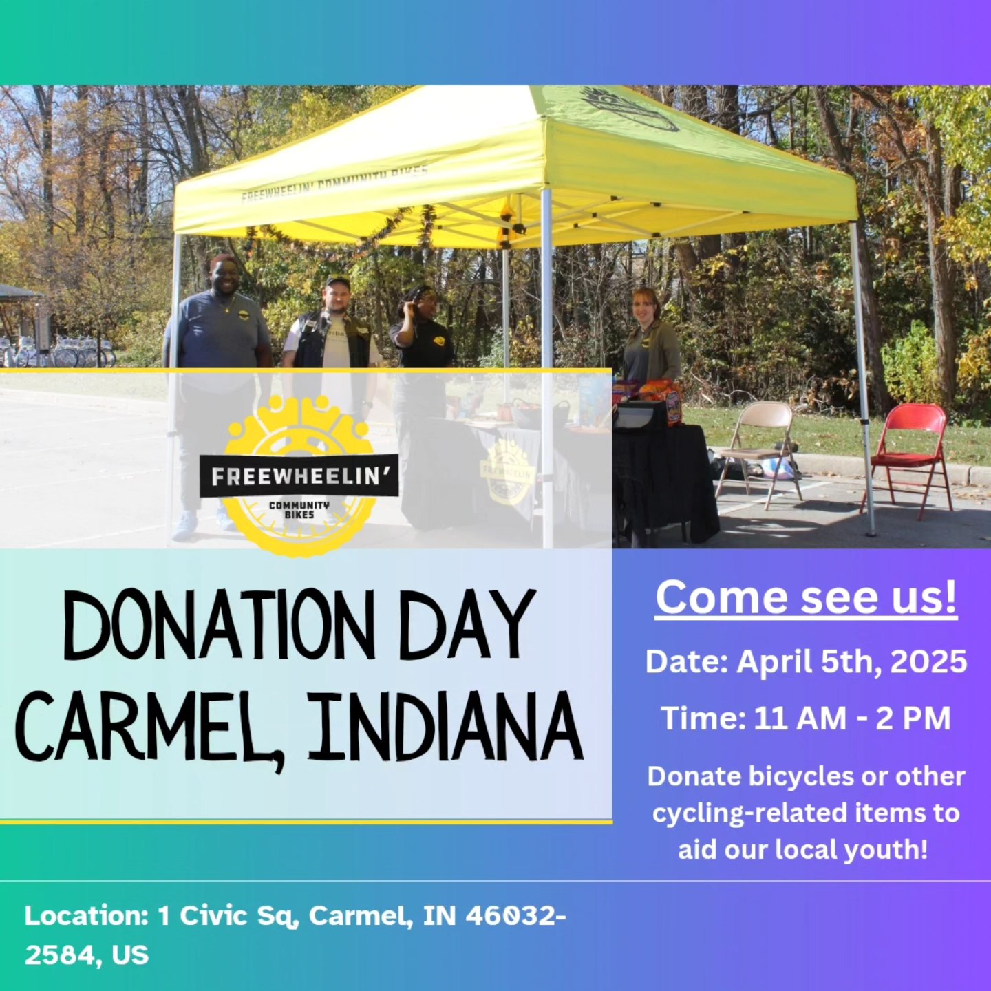 The Bike Carmel team can't wait to see you at the Carmel City Hall south parking lot for our annual Bike Donation Day in partnership with Freewheelin' Community Bikes.