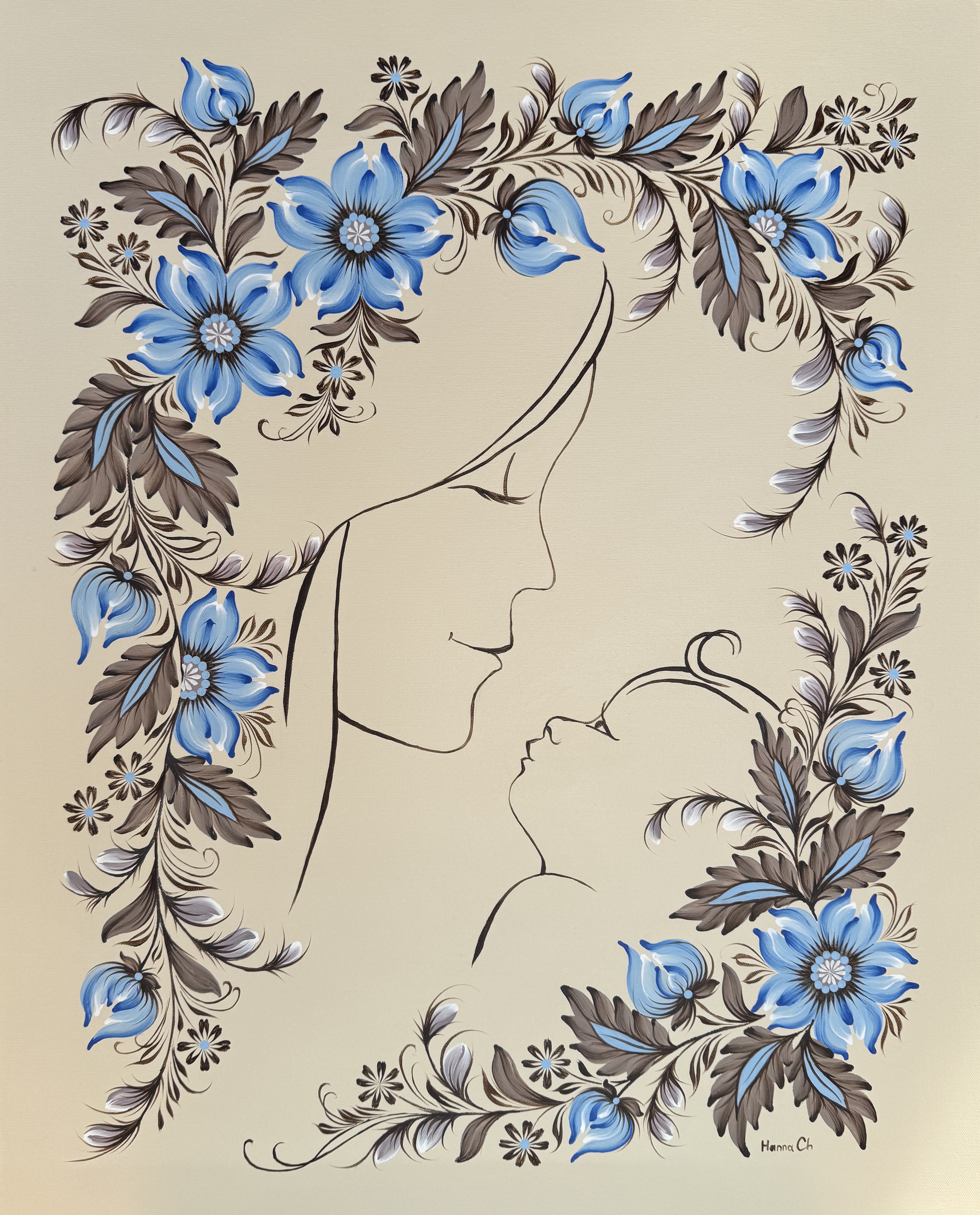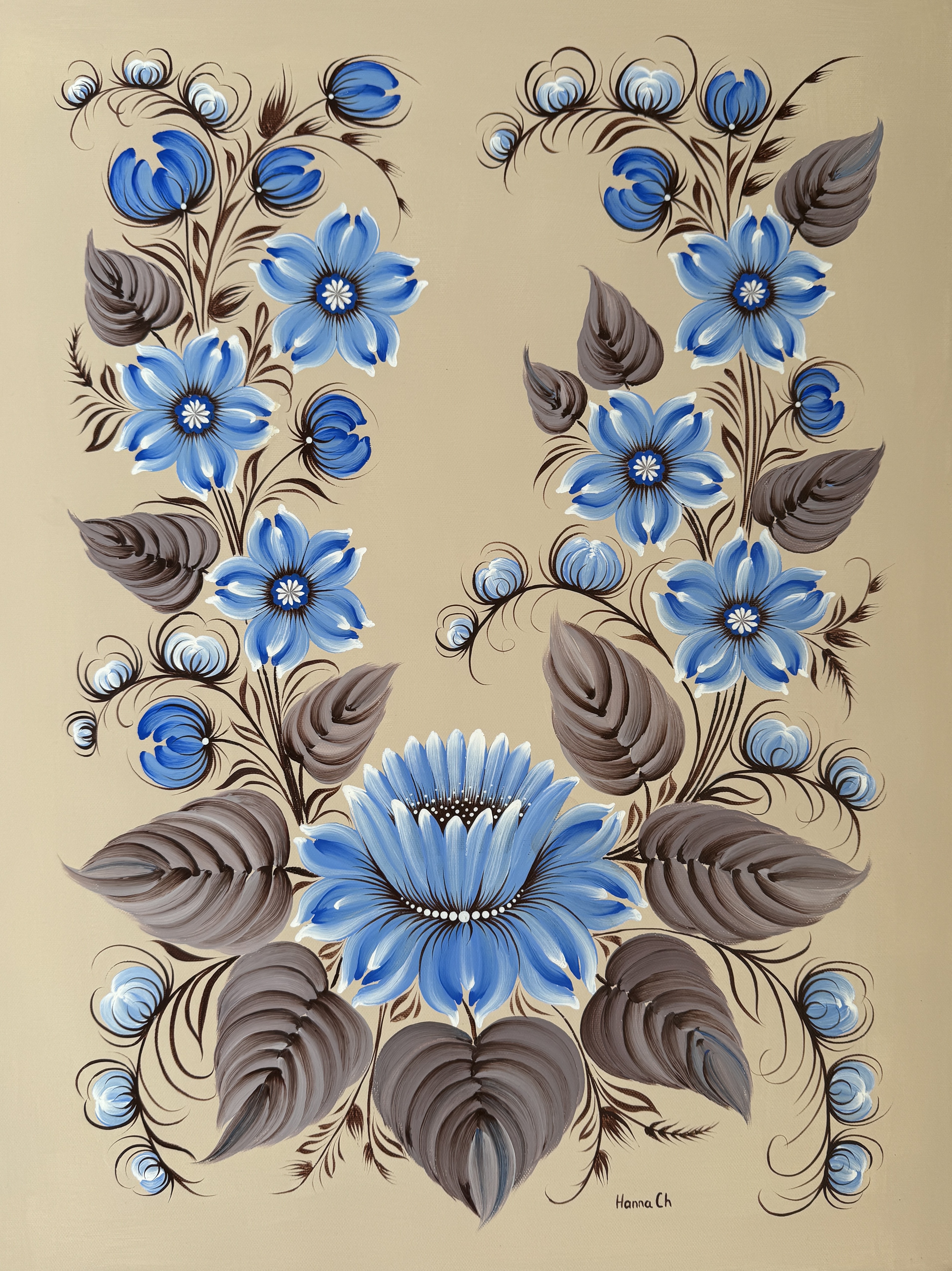 Due to the war in Ukraine, Hanna has made Dallas her home, where she continues to create, preserving this centuries-old tradition while giving it a fresh, contemporary expression. Her paintings embody not only the beauty of ornamentation but also a deeply personal story — one of resilience, hope, and an enduring connection to her homeland.