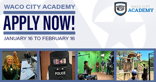 Ready for a fun, behind-the-scenes look at how your city runs? Sign up for Waco City Academy! The free ten-session class features presentations and activities from most City of Waco departments. You could find yourself filming a city PSA, taking a seat in the official council chambers, interacting with real police equipment, or even feeding a giraffe.
