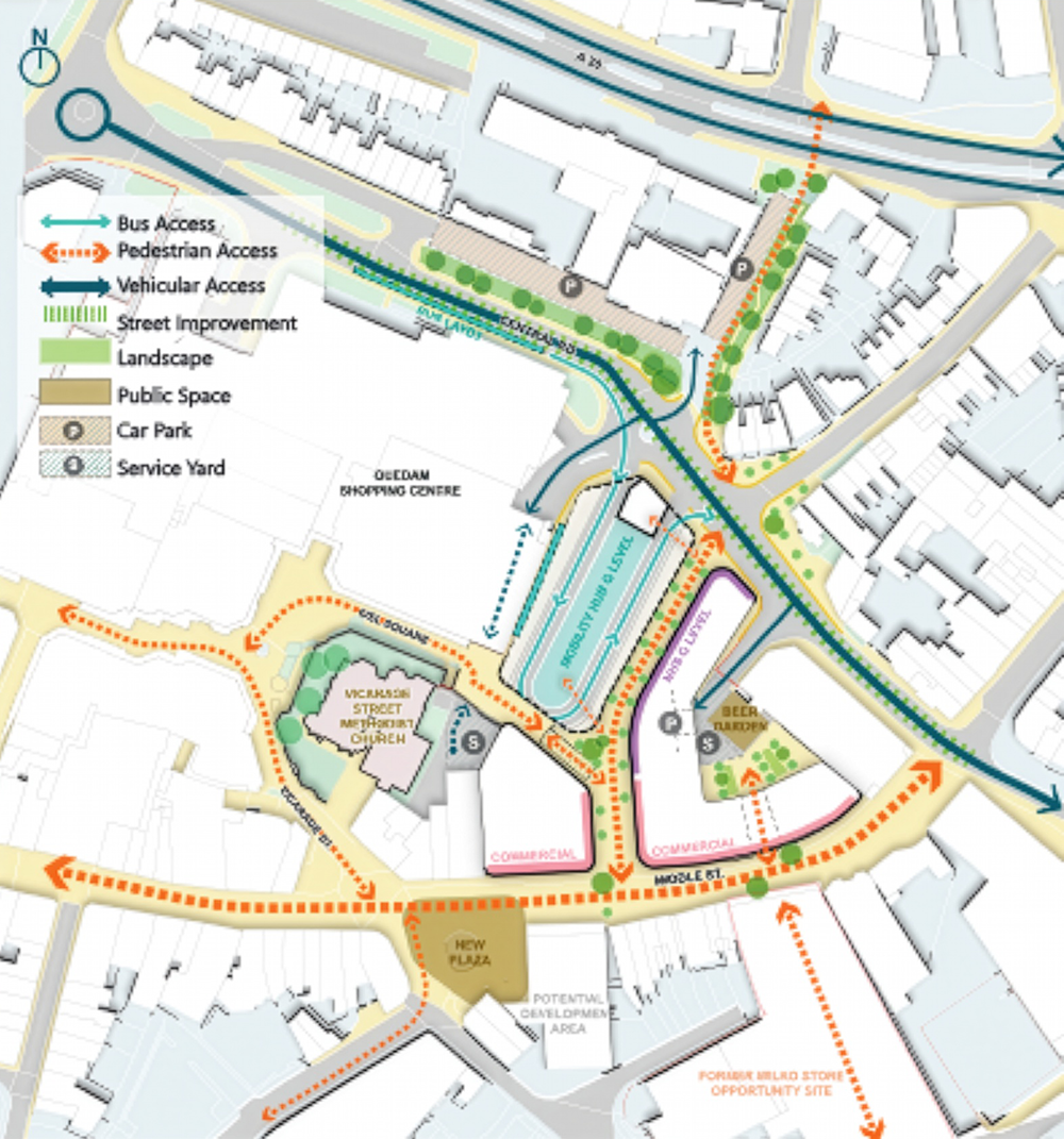 This masterplan includes an assessment of the current town centre and its heritage, building upon its key characteristics and formulating a vision, setting out design principles, and identifying various potential development opportunities. It includes a number of Council owned “opportunity sites” and seeks to maximise how the development of these sites can collectively contribute to the wider improvement of the town centre, rather than be considered in isolation.